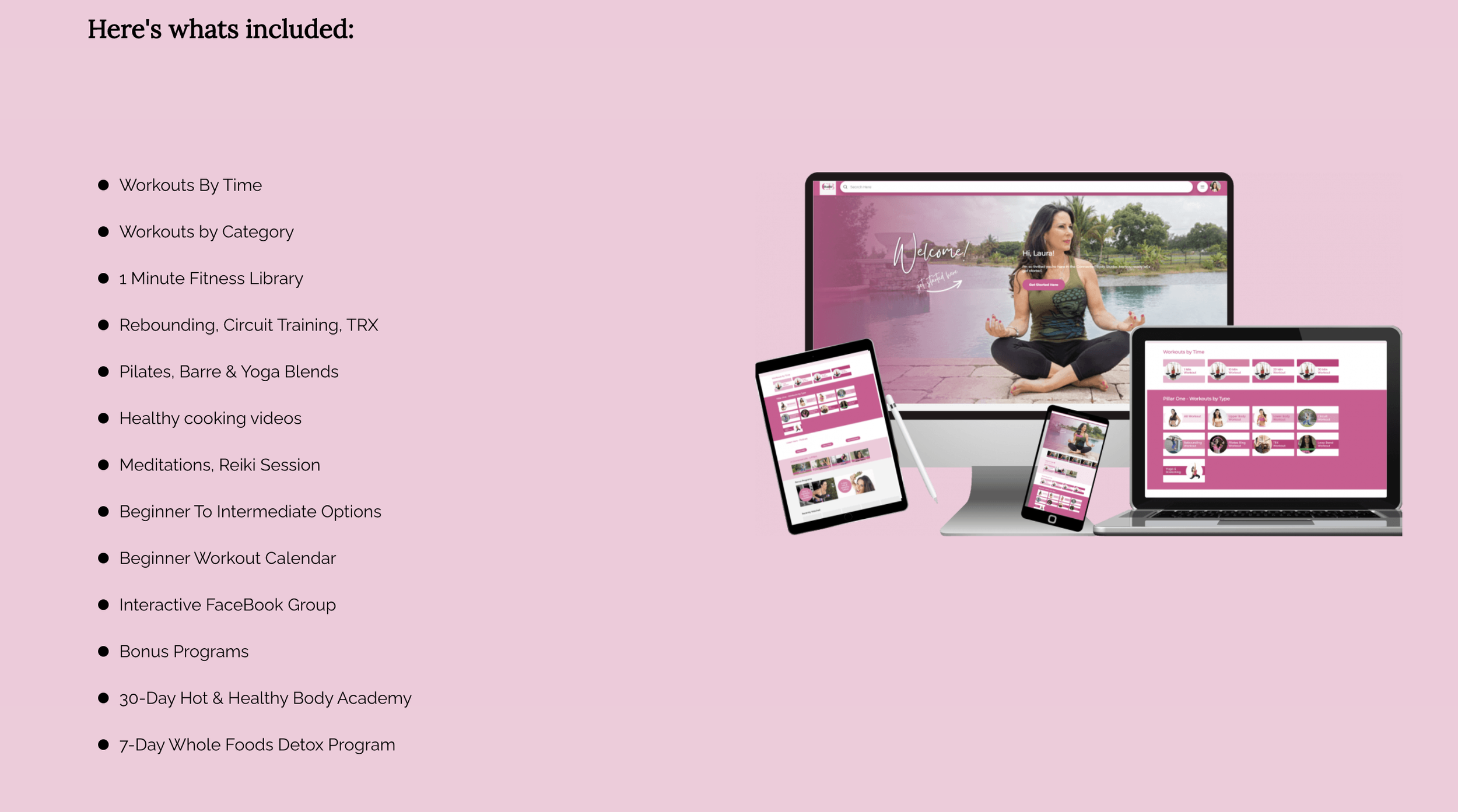 I’ve used Searchie to create my own sales pages and I’ve helped my clients create sales pages in Searchie. I’ve found that Searchie is a great tool for creating an effective sales page that will dovetail perfectly with your Searchie-hosted program! In this post, I’ll be sharing images from my client Laura London’s health and fitness membership sales page that we created using Searchie.